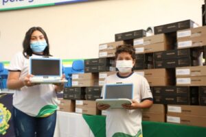 AMAZONAS – O Governo do Estado entregou, no sábado (18/09), 128 notebooks a estudantes e professores da rede estadual do município de Rio Preto da