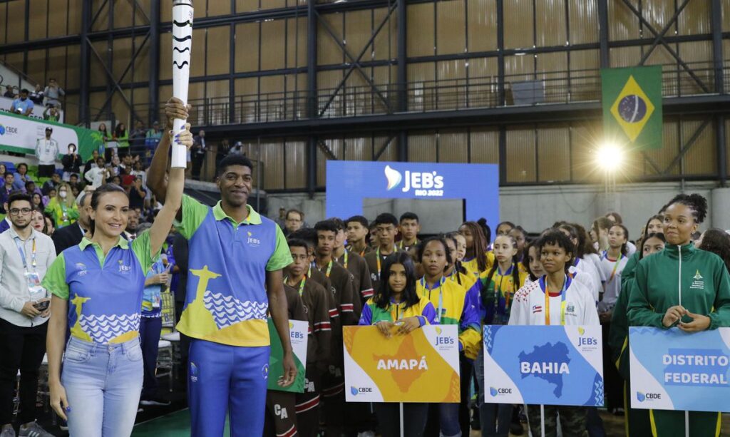 ESPORTES – Os Jogos Escolares Brasileiros (JEBs) 2022 foram abertos no Rio de Janeiro na noite desta quinta-feira (3). A cerimônia foi realizada na Arena da Juventude, no Complexo Esportivo de Deodoro, com as presenças dos ministros da Cidadania, Ronaldo Bento, e da Educação, Victor Godoy, além de ex-atletas olímpicos brasileiros.
