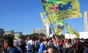 POLÍTICA – Um ato em defesa do Sistema Único de Saúde (SUS), da vida e da democracia reuniu centenas de pessoas, na manhã desta terça-feira
