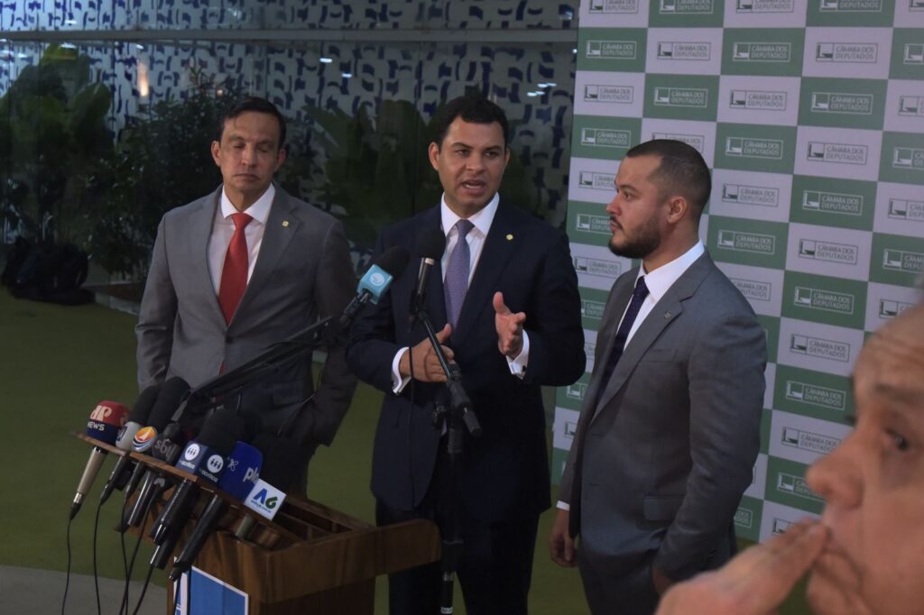 POLÍTICA – Em coletiva à imprensa nesta quinta-feira, 6/7, o deputado federal Saullo Vianna (União-AM), acompanhado dos colegas do Grupo de Trabalho que analisa a proposta de Reforma Tributária, Sidney Leite e Adail Filho, anunciou que um acordo entre bancada no Congresso e Governo do Amazonas com o governo federal garantiu a inclusão dos pleitos do Amazonas no texto que foi apresentado hoje em plenário.