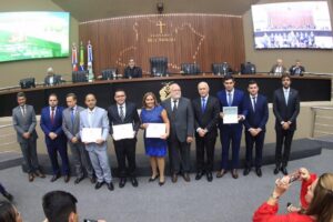 MANAUS – Por propositura do deputado estadual Adjuto Virrosas é homenageada na Aleam por mais de um século de atuação contínua Afonso, os representantes da