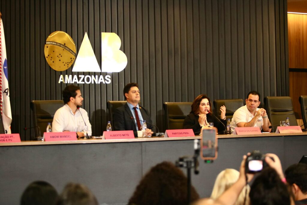 POLÍTICA – Trazendo uma vasta experiência em gestão à frente da maior instituição de ensino superior do Norte do país, a professora, advogada e reitora da Fametro, Maria do Carmo Seffair, participou na noite da sexta-feira, 12/4, do primeiro debate entre pré-candidatos à Prefeitura de Manaus, realizado pela jornalista Cynthia Blink, na sede da Ordem dos Advogados do Brasil no Amazonas (OAB-AM), zona Centro-Sul da capital.