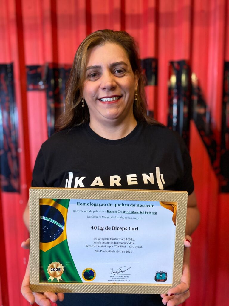 MANAUS/AM – A atleta amazonense de powerlifting, Karen Peixoto, recebeu a homologação do recorde brasileiro alcançado por ela no Power Bíceps Strict Curl, após levantar 40 quilos durante a Eliminatória do Campeonato Mundial da Global Powerlifting Committee (GPC), disputado em abril deste ano. Além da marca, Karen também garantiu a sua participação no GPC World Championship 2025, que acontece de 22 a 26 de outubro, em Santa Catarina.