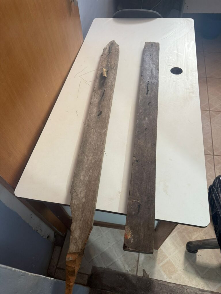 Ainda segundo a delegada, com a colaboração dos depoimentos de familiares, foi possível apreender um terçado e uma ripa de madeira usados no crime; e efetuar a prisão em flagrante do homem, em via pública, e apreender o adolescente na rua Ângelo Portugal, no município.