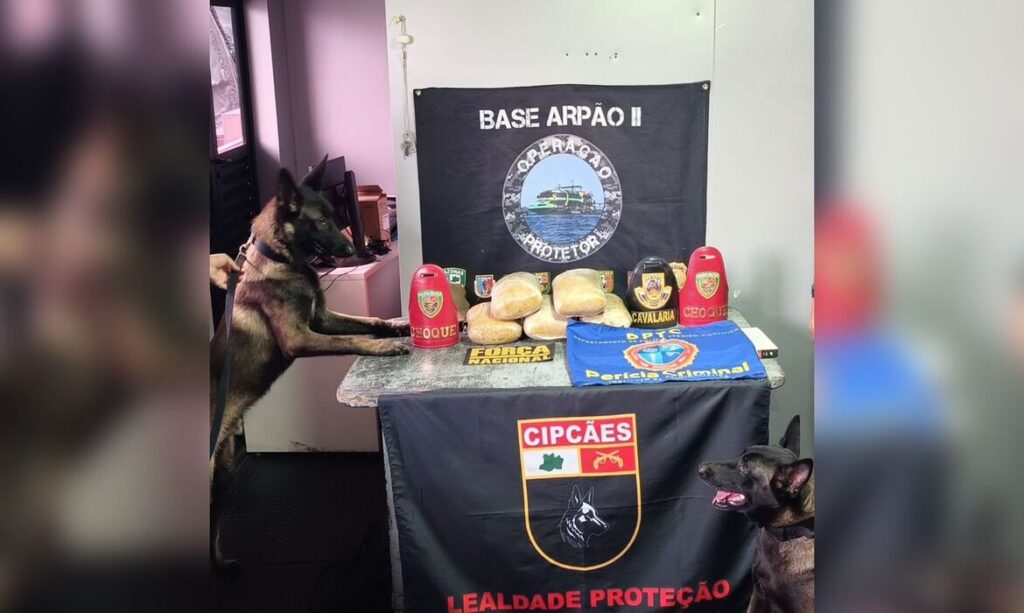 Ao terem inspecionado o acessório, encontraram três tabletes de maconha, que totalizaram 5 kg. Logo em seguida, os cães sinalizaram a presença de mais cinco tabletes de entorpecentes, mas na proa da embarcação.